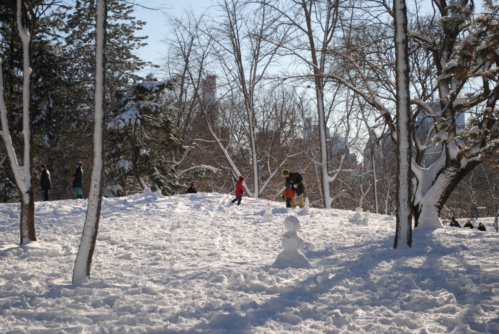 I mentioned this already, but I went traipsing through the park in the knee deep snow yesterday, and it was terrific. B and I went off the beaten path and tried to make our own tracks in the snow (since all of the high-profile fields in Central Park were already packed with people). We were only mildly successful on new tracks, but, oh my, it was nice to get outside in the fresh, crisp snowy air.
